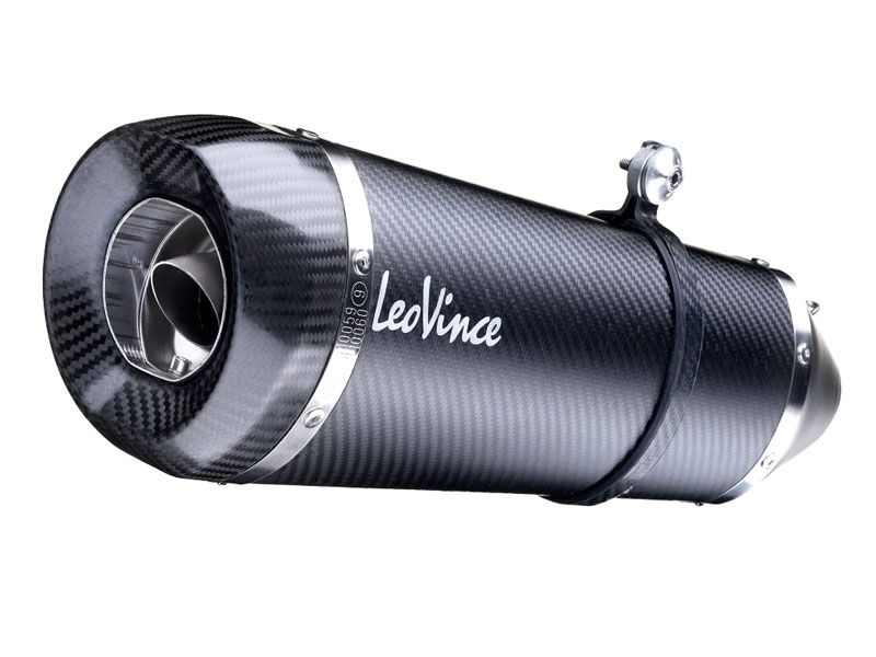Escape silencioso Leovince 14128S Ducati Scrambler 800 2015/2016 Factory S Carbono. Espíritu italiano y alma del guerrero, así es el nuevo escape LeoVince Factory S. Este escape posee toda la tecnología de LeoVince fruto de la experiencia e investigación adquirida en la competición. El producto está desarrollado individualmente al banco de prueba para cada modelo de moto para ofrecer las mejores prestaciones. El cuerpo del silencioso está realizado en fibra de carbono combinado con una lana de vidrio de alta resistencia capaz de soportar hasta los 900 grados. La tapa final del silencioso Factory S así como la abrazadera de sujeción, también están realizadas en fibra de carbono. Con ello se logra la perfecta armonía en su diseño con las máxima ligereza.