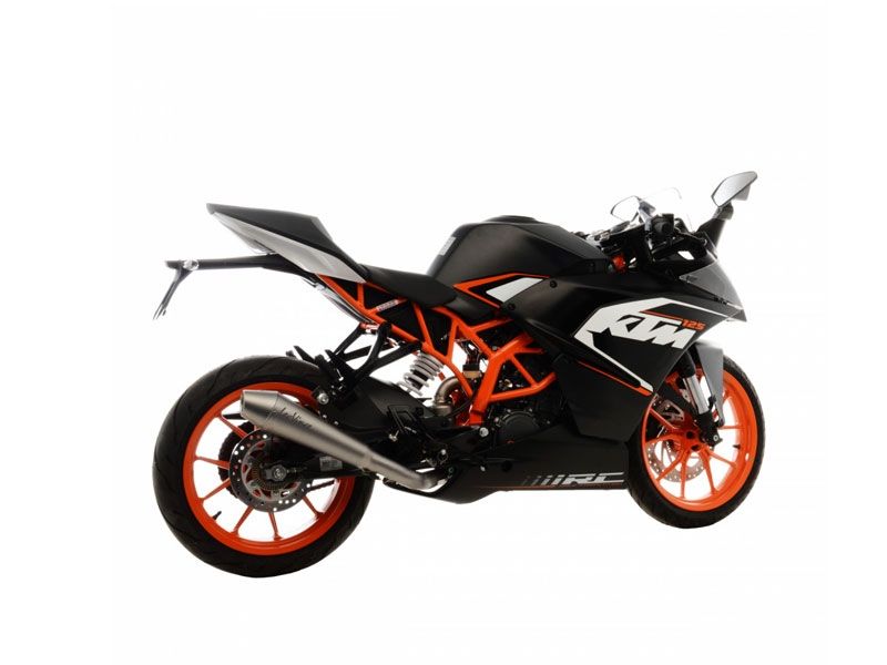 Escape silencioso Leovince 14169 KTM RC 125 2014/2016 GP Style. El silencioso Gp Style nace después de toda la experiencia adquirida por leoVince en colaboración con los mejores equipos del mundial de MotoGp. Este escape ofrece el equilibrio perfecto entre precio, diseño y rendimiento. El cuerpo del silencioso está realizado en acero inoxidable AISI 304 con soldadura TIG y uacabado arenado. La abrazadera de sujeción está realizada enteramente en fibra de carbono ultra resistente de 5 capas. El logotipo de LeoVince está grabado a láser para un acabado y resistencia excepcional. Cada escape Gp Style está desarrollado en el banco de pruebas para mejorar los valores de par y potencia del motor dentro de los límites impuestos por la normativa europea.