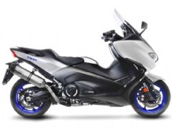 Escape completo Leovince 14187EK Yamaha T-MAX 530 2017 LV One Evo Acero Inox. Escape completo homologado equipado con el silencioso Sbk LV One Evo y diseñado para incrementar las prestaciones de la nueva Yamaha T-MAX 530 2017. El silencioso Lv One Evo posee un diseño compacto, moderno y de líneas cuadradas. El cuerpo del silencioso está realizado en acero inoxidable con revestimento AISI 304 para una resistencia, rendimiento y ligereza exepcional. La tapa final del silencioso LV One Evo está cortada asimétricamente y fabricada en fibra de carbono para combinar el máximo rendimiento y ligereza sin renunciar al estilo Made in Italy.
