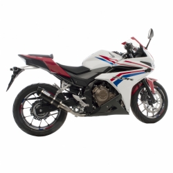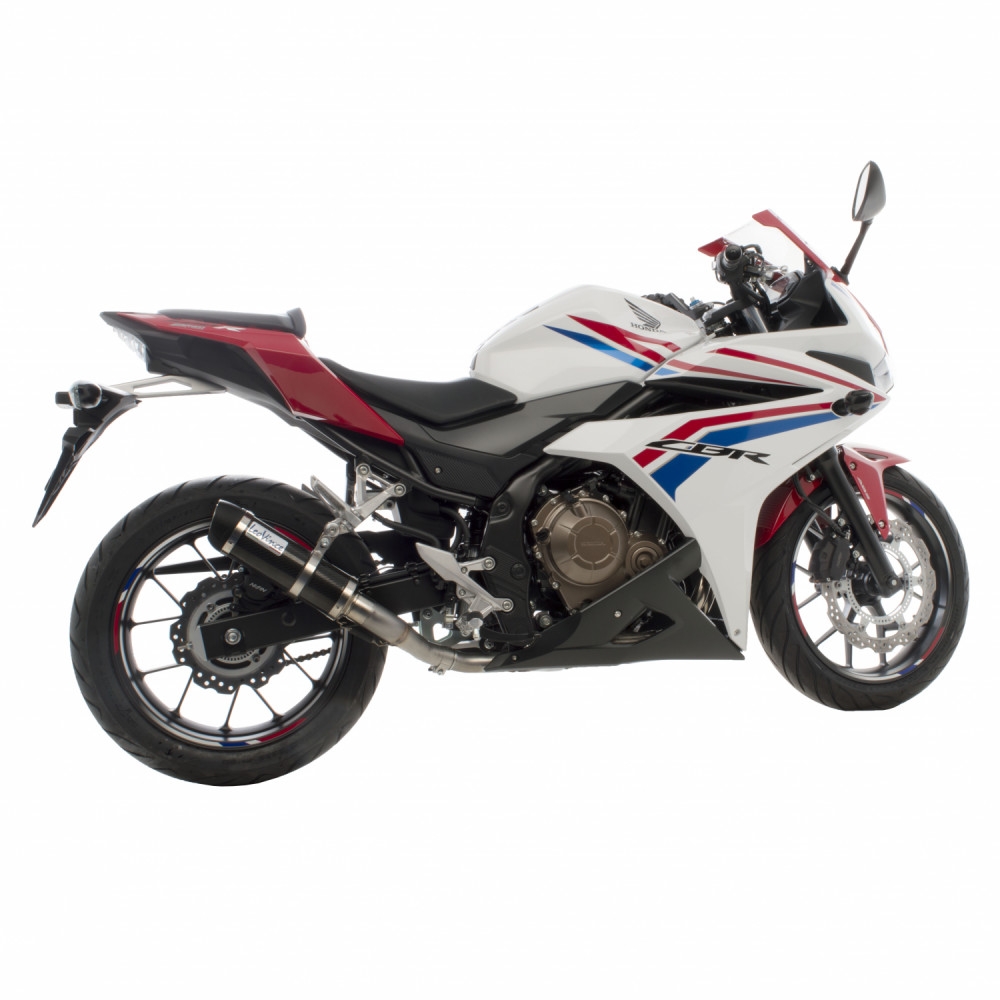 Escape silencioso Leovince 3384EU Honda CB 500 F 2016 Gp Corsa Evo Carbono. El escape LeoVince Gp Corsa Evo representa el mejor equilibrio entre look, rendimiento y precio para motocicletas de 4 tiempos hasta 500cc de cilindrada. Su diseño deriva de MotoGP y está fabricado en carbono mate con copa de salida en tecnopolímero. Dispone de un adhesivo en aluminio embellecedor con el logo de la marca.