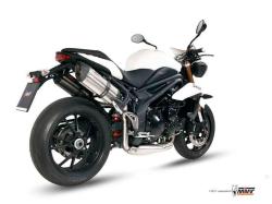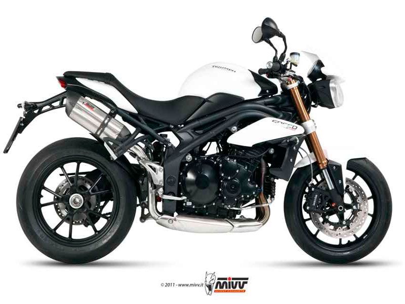Silencioso Escape Mivv Suono AT.012.L7 Acero Inox / Copa Carbono Triumph SPEED TRIPLE 1050 2011-2015. El silencioso de escape Slip On Mivv Suono AT.012.L7 se caracteriza por su peso ligero, sonido característico y diseño innovador. El cuerpo central de este avanzado Slip On está realizado en acero inoxidable muy resistente a los impactos, debido a su proceso especial de galvanización. Los finales del silencioso de escape Mivv S.044.L7 y la brazadera de sujección están realizados con fibra de carbono de la mejor calidad. El slip-on Mivv AT.012.L7 es un escape homologado por la CE gracias a una profunda y larga investigación realizada por el R&D de Mivv. Con el montaje del silencioso Slip On Mivv S.044.L7 también se reduce notablemente el peso respecto al escape original de la moto. (La información que facilita Ramirez Motoracing es orientativa y sujeta a la verificación en la web del fabricante).