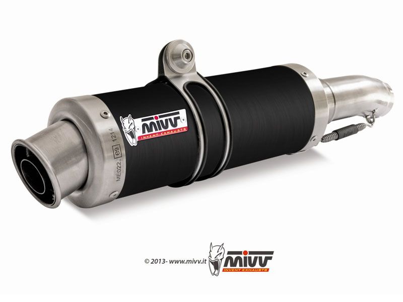 Escape silencioso Mivv D.027.LXB Slip-On GP Steel Black. El silencioso de escape Slip-On Mivv D.027.LXB GP Steel Black destaca por sus reducidas dimensiones, elegante sonido y por su diseño indiscutiblemente de carreras. Este silencioso corto y redondo con las siglas GP (deriva de MotoGp), posee una boquilla ensanchada que permite enriquecer la carga racing y ofrecer prestaciones elevadas a la moto. El Slip-On Mivv D.027.LXB GP Steel Black es un escape homologado por la CE gracias a una profunda y larga investigación realizada por el R&D de Mivv. La funda exterior está realizada con acero de acabado negro mate resistente y duradero. Con el montaje del silencioso Mivv D.027.LXB GP Steel Black también se reduce notablemente el peso respecto al escape original. (La información que facilita Ramirez Motoracing es orientativa y sujeta a la verificación en la web del fabricante).