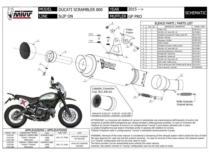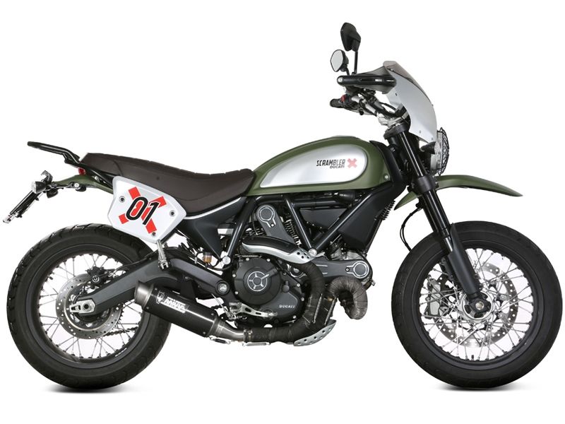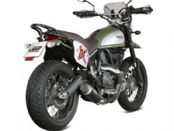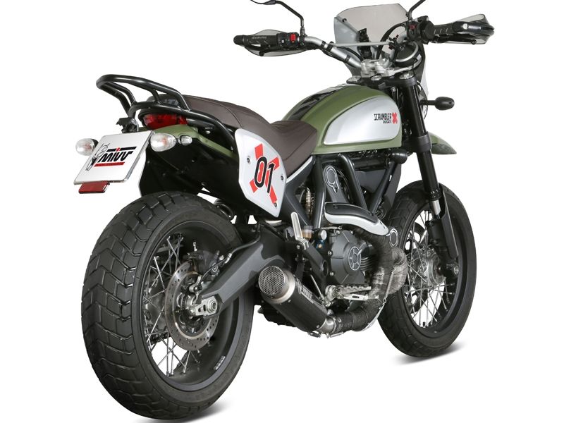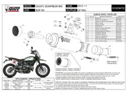 Escape Mivv D.035.L2P Ducati Scrambler 800 2015> Gp Pro (slip-on). Mivv Gp Pro representa la evolución en tecnología y diseño del exitoso escape Mivv Gp. Este nuevo escape Mivv se caracteriza por ofrecer un diseño compacto y agresivo con acabado de máxima precisión. El tubo de salida del Gp Pro incorpora una rejilla amovible y protectora similar a las que se utilizan en competición, Tras ella se camufla sutilmente el dB-killer para no dañar su estética. La nueva generación de slip-ons Gp Pro ha sido diseñada para motos de última generación deportivas y otros modelos naked. El logotipo de Mivv está realizado por la a través de tecnología láser para un acabado muy fino y elegante.