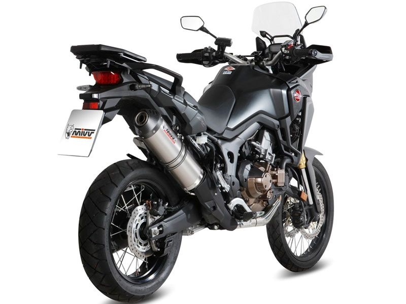 Silencioso Escape Slip On Mivv H.059.LNC Oval Titanio / Copa Carbono Honda CRF1000L Africa Twin 2016. Silencioso de escape Slip On Mivv H.059.LNC diseñado específicamente para cada modelo moto y que se caracteriza precisamente por su copa de carbono tipo twill 3k de alta resistencia térmica. El Slip On escape Mivv H.059.LNC está realizado en Titanio; ofrece mayor resistencia que el carbono, es más resistente que aluminio y más que el acero. La diferencia de peso con respecto al escape original es sustancial. Este silencioso de diseño ovalado, disipa perfectamente el calor gracias sus hendiduras en la copa de carbono, que a su vez, también transmiten un look agresivo. Fabricado con las mejores tecnologías del momento, el Slip On Oval Titanio Carbon Cap deriva directamente de la experiencia de Mivv en los Grandes Premios de motociclismo. El escape Mivv H.059.LNC también ofrece garantía a nivel de prestaciones, asegurando una mejora de potencia y del par de motor. El Slip On Mivv Oval Titanio Carbon Cap es homologado conforme a las normas europeas. (La información que facilita Ramirez Motoracing es orientativa y sujeta a la verificación en la web del fabricante).