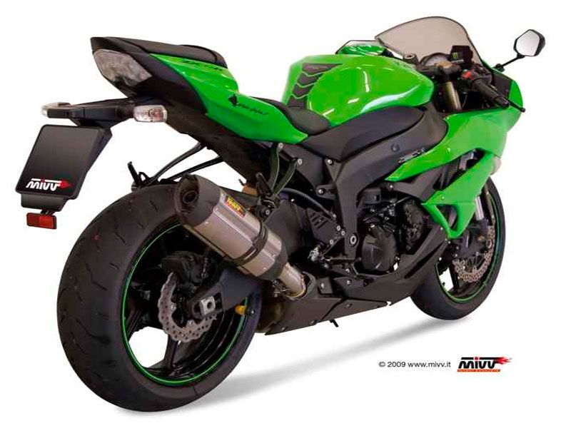 Silencioso Escape Mivv Suono K.022.L7 Acero Inox / Copa Carbono Kawasaki ZX 6 R 2009-2012. El silencioso de escape Slip On Mivv Suono K.022.L7 se caracteriza por su peso ligero, sonido característico y diseño innovador. El cuerpo central de este avanzado Slip On está realizado en acero inoxidable muy resistente a los impactos, debido a su proceso especial de galvanización. Los finales del silencioso de escape Mivv S.044.L7 y la brazadera de sujección están realizados con fibra de carbono de la mejor calidad. El slip-on Mivv K.022.L7 es un escape homologado por la CE gracias a una profunda y larga investigación realizada por el R&D de Mivv. Con el montaje del silencioso Slip On Mivv S.044.L7 también se reduce notablemente el peso respecto al escape original de la moto. (La información que facilita Ramirez Motoracing es orientativa y sujeta a la verificación en la web del fabricante).
