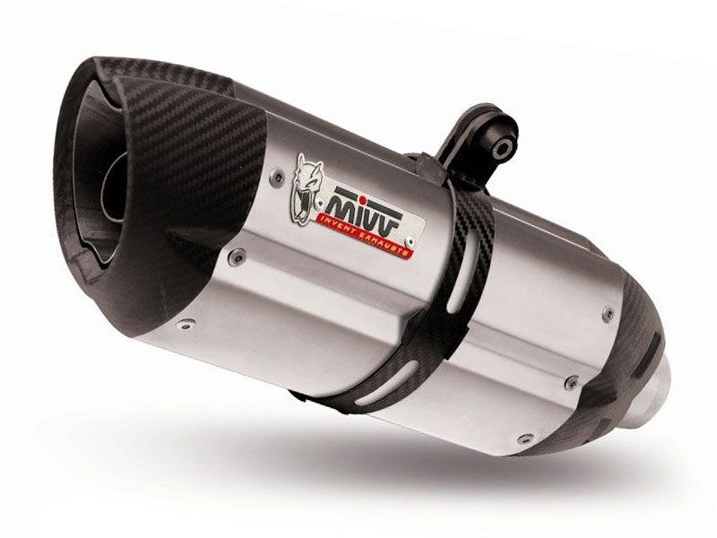 Silencioso Escape Mivv Suono K.038.L7 Acero Inox / Copa Carbono Kawasaki NINJA 300 ABS 2013-2015. El silencioso de escape Slip On Mivv Suono K.038.L7 se caracteriza por su peso ligero, sonido característico y diseño innovador. El cuerpo central de este avanzado Slip On está realizado en acero inoxidable muy resistente a los impactos, debido a su proceso especial de galvanización. Los finales del silencioso de escape Mivv S.044.L7 y la brazadera de sujección están realizados con fibra de carbono de la mejor calidad. El slip-on Mivv K.038.L7 es un escape homologado por la CE gracias a una profunda y larga investigación realizada por el R&D de Mivv. Con el montaje del silencioso Slip On Mivv S.044.L7 también se reduce notablemente el peso respecto al escape original de la moto. (La información que facilita Ramirez Motoracing es orientativa y sujeta a la verificación en la web del fabricante).