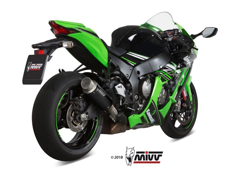 Escape Mivv K.042.LXBP Gp Pro Kawasaki ZX-10R 2016 (slip-on). Mivv Gp Pro representa la evolución en tecnología y diseño del exitoso escape Mivv Gp. Este nuevo escape Mivv se caracteriza por ofrecer un diseño compacto y agresivo con acabado de máxima precisión. El tubo de salida del Gp Pro incorpora una rejilla amovible y protectora similar a las que se utilizan en competición, Tras ella se camufla sutilmente el dB-killer para no dañar su estética. La nueva generación de slip-ons Gp Pro ha sido diseñada para motos de última generación deportivas y otros modelos naked. El logotipo de Mivv está realizado por la a través de tecnología láser para un acabado muy fino y elegante. (La información que facilita Ramirez Motoracing es orientativa y sujeta a la verificación en la web del fabricante).