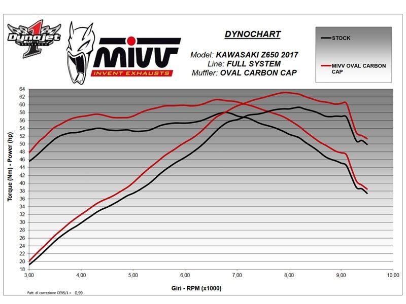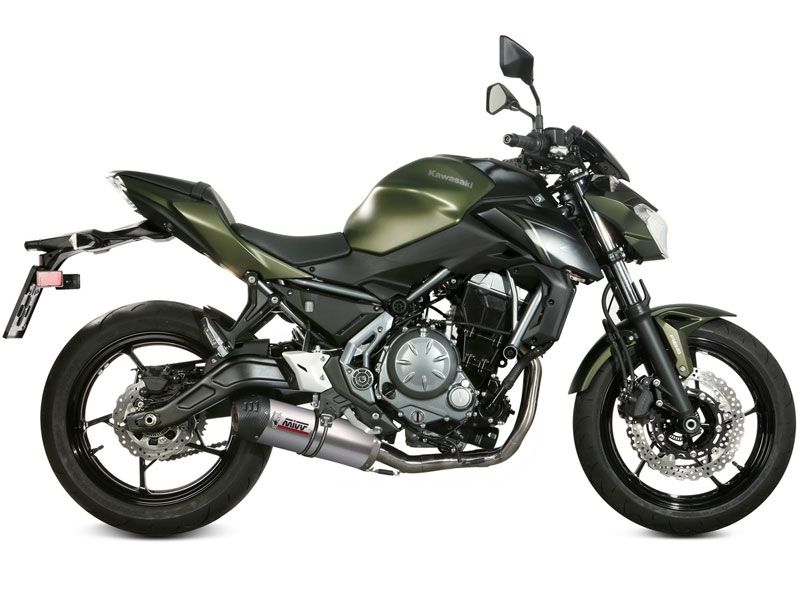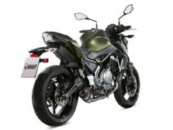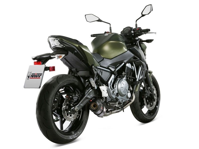 Escape completo Mivv K.044.L4C Kawasaki Z650 2017 Oval Titanio / Copa Carbono. Escape completo Mivv K.044.L4C equipado con el silencioso de escape Slip-On Oval Carbon Cap y que se caracteriza precisamente por su copa de carbono tipo twill 3k de alta resistencia térmica. La diferencia de peso con respecto al escape original es sustancial. Este silencioso de diseño ovalado, disipa perfectamente el calor gracias sus hendiduras en la copa de carbono, que a su vez, también transmiten un look agresivo. Fabricado con las mejores tecnologías del momento, el Slip On Oval Titanio Carbon Cap deriva directamente de la experiencia de Mivv en los Grandes Premios de motociclismo. Los colectores están realizados en acero inoxidable y soldados con TIG para conseguir el mejor acabado. El escape Mivv K.044.L4C también ofrece garantía a nivel de prestaciones, asegurando una mejora de potencia y del par de motor. (La información que facilita Ramirez Motoracing es orientativa y sujeta a la verificación en la web del fabricante).