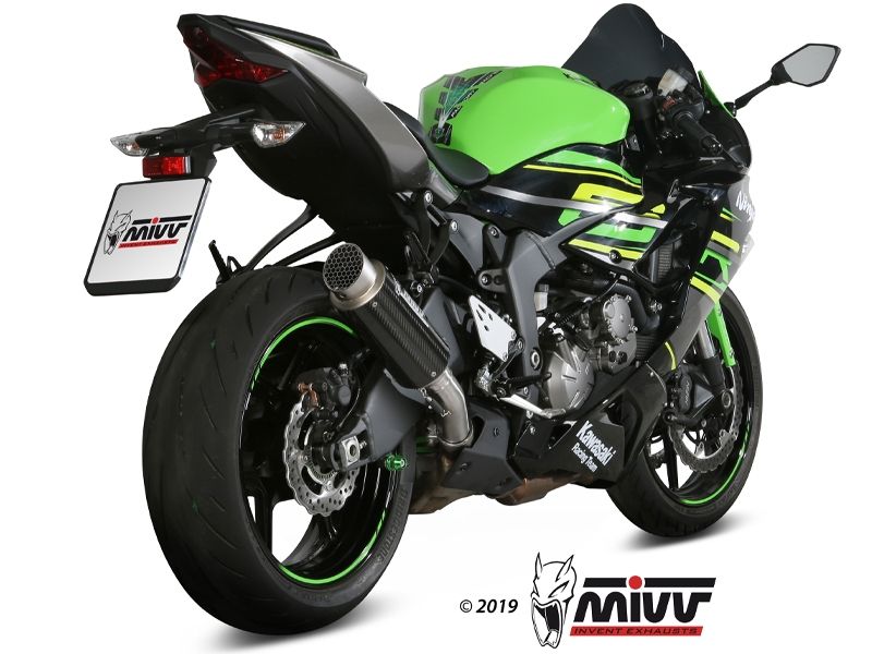 Escape Mivv K.050.L2P GP Pro Kawasaki ZX-6R 636 2019 (slip-on carbono). Mivv Gp Pro representa la evolución en tecnología y diseño del exitoso escape Mivv Gp. Este nuevo escape Mivv se caracteriza por ofrecer un diseño compacto y agresivo con acabado de máxima precisión. El tubo de salida del Gp Pro incorpora una rejilla amovible y protectora similar a las que se utilizan en competición, Tras ella se camufla sutilmente el dB-killer para no dañar su estética. La nueva generación de slip-ons Gp Pro ha sido diseñada para motos de última generación deportivas y otros modelos naked. El logotipo de Mivv está realizado por la a través de tecnología láser para un acabado muy fino y elegante. (La información que facilita Ramirez Motoracing es orientativa y sujeta a la verificación en la web del fabricante).