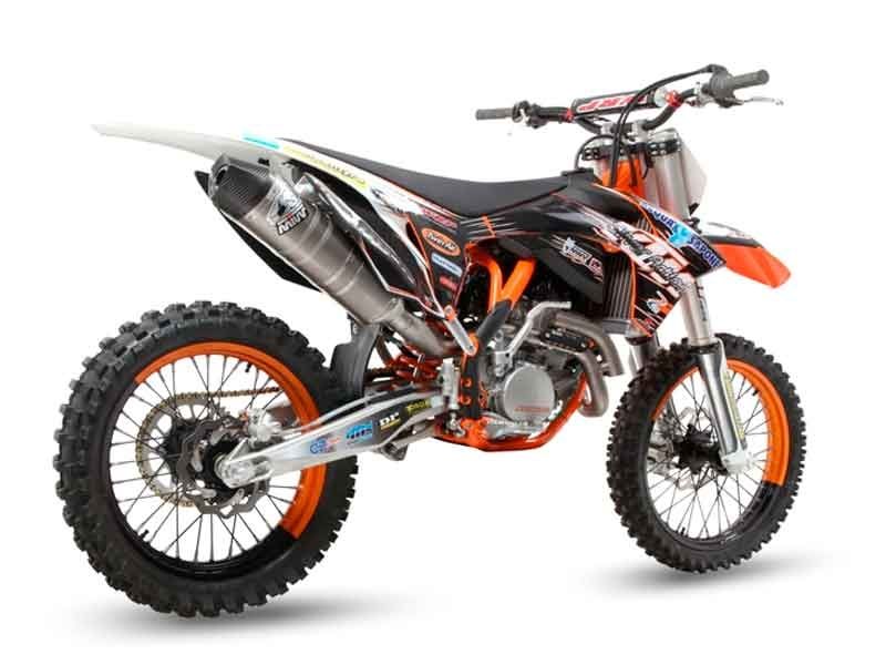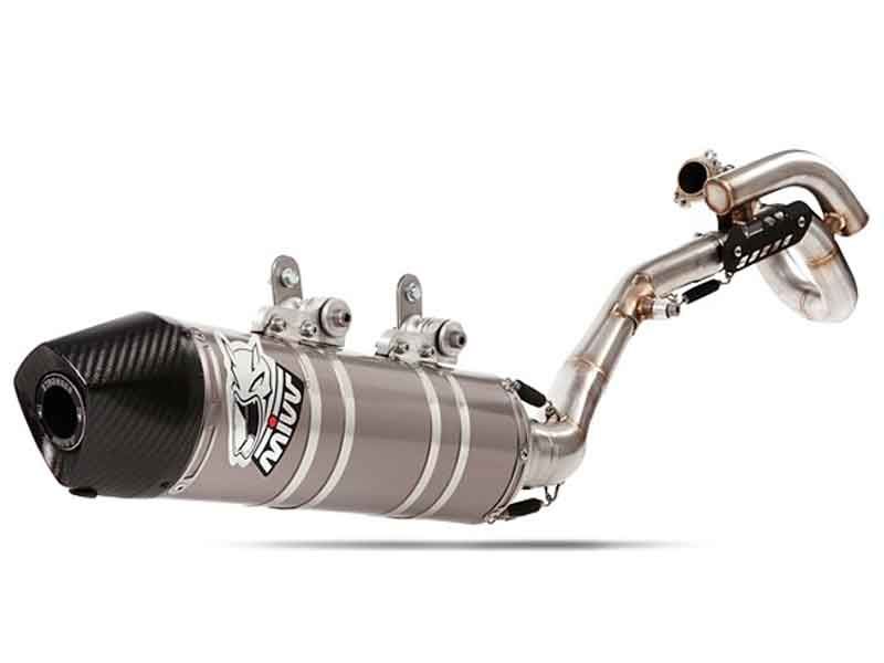 Escape completo 1x1 Mivv M.KT.021.SXC.F Stronger Cross (posición standard). El escape Mivv Stronger off-road ofrece prestaciones de potencia y de par (en especial a bajo régimen) superiores al escape original. Para diseñar el escape Mivv Stronger off-road se han realizado numerosas pruebas en el banco de potencia y además se ha contado con la colaboración de los mejores equipos y pilotos profesionales. El resultado final es un escape de peso reducido y gran precisión en los acoplamientos (para garantizar facilidad de montaje). Este escape completo es idéntico a la versión de titanio, pero fabricado con tubos y silenciadores de acero inox. La copa final realizada en fibra de carbono ofrece una terminación muy agresiva y estética. Cuenta con un práctico paracalor de aluminio alojado en el colector. La imagen mostrada es genérica. (La información que facilita Ramirez Motoracing es orientativa y sujeta a la verificación en la web del fabricante).