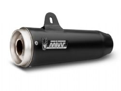 Escape Mivv M.012.LGB. Ghibli Black Moto Guzzi V7 III 2017-2021. Destinado para las motos de 600 cc en adelante, el Slip On Mivv Ghibli M.012.LGB auna tecnología y buen hacer por todos sus costados. Este Slip On de gama alta está realizado en acero inoxidable (barnizado en negro) tipo AISI 304 de gran resistencia y ligereza y todas sus soldaduras están realizadas minuciosamente en TIG. El Slip On Mivv Ghibli a su vez es muy ligero y una vez colocado en la moto, la rebaja del peso con respecto al escape original es considerable. El escape Mivv M.012.LGB aporta una armoniosa estética además de unas óptimas prestaciones, asegurando una mejora de potencia y del par de motor en la moto. (La información que facilita Ramirez Motoracing es orientativa y sujeta a la verificación en la web del fabricante). Se venden 2 unidades.