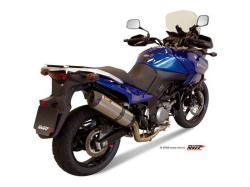 Silencioso Escape Mivv Suono S.027.L7 Acero Inox / Copa Carbono Suzuki DL 650 V-STROM 2004. El silencioso de escape Slip On Mivv Suono S.027.L7 se caracteriza por su peso ligero, sonido característico y diseño innovador. El cuerpo central de este avanzado Slip On está realizado en acero inoxidable muy resistente a los impactos, debido a su proceso especial de galvanización. Los finales del silencioso de escape Mivv S.044.L7 y la brazadera de sujección están realizados con fibra de carbono de la mejor calidad. El slip-on Mivv S.027.L7 es un escape homologado por la CE gracias a una profunda y larga investigación realizada por el R&D de Mivv. Con el montaje del silencioso Slip On Mivv S.044.L7 también se reduce notablemente el peso respecto al escape original de la moto. (La información que facilita Ramirez Motoracing es orientativa y sujeta a la verificación en la web del fabricante).