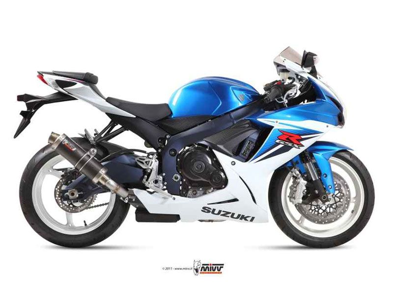 Escape silencioso Mivv S.036.L2S Slip-On GP Carbono Suzuki GSX R 600 2011-2012. El silencioso de escape Slip On Mivv S.036.L2S GP Carbono destaca por sus reducidas dimensiones, elegante sonido y por su diseño indiscutiblemente de carreras. Este silencioso corto y redondo con las siglas GP (deriva de MotoGp), posee una boquilla ensanchada que permite enriquecer la carga racing y ofrecer prestaciones elevadas a la moto. El slip-on Mivv S.036.L2S GP Carbono es un escape homologado por la CE gracias a una profunda y larga investigación realizada por el R&D de Mivv. La funda exterior está realizada con carbono tipo 3k twill combinado con unas resinas especiales que garantizan resistencia y durabilidad. Con el montaje del silencioso Mivv S.036.L2S GP Carbono también se reduce notablemente el peso respecto al escape original. (La información que facilita Ramirez Motoracing es orientativa y sujeta a la verificación en la web del fabricante).