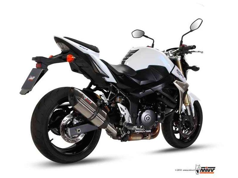 Silencioso Escape Mivv Suono S.037.L7 Acero Inox / Copa Carbono Suzuki GSR 750 2011. El silencioso de escape Slip On Mivv Suono S.037.L7 se caracteriza por su peso ligero, sonido característico y diseño innovador. El cuerpo central de este avanzado Slip On está realizado en acero inoxidable muy resistente a los impactos, debido a su proceso especial de galvanización. Los finales del silencioso de escape Mivv S.044.L7 y la brazadera de sujección están realizados con fibra de carbono de la mejor calidad. El slip-on Mivv S.037.L7 es un escape homologado por la CE gracias a una profunda y larga investigación realizada por el R&D de Mivv. Con el montaje del silencioso Slip On Mivv S.044.L7 también se reduce notablemente el peso respecto al escape original de la moto. (La información que facilita Ramirez Motoracing es orientativa y sujeta a la verificación en la web del fabricante).