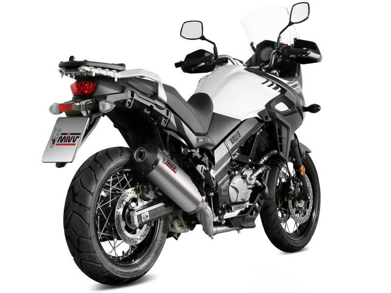 Escape Mivv S.049.LNC Suzuki Dl V-Strom 650 2017> Oval Titanio / Copa Carbono. Silencioso de escape Slip On Mivv S.049.LNC diseñado específicamente para cada modelo moto y que se caracteriza precisamente por su copa de carbono tipo twill 3k de alta resistencia térmica. El Slip On escape Mivv S.049.LNC está realizado en titanio para ser resistente y muy ligero y la diferencia de peso respecto al escape original es sustancial. Este silencioso de diseño ovalado, disipa perfectamente el calor gracias sus hendiduras en la copa de carbono, que a su vez, también transmiten un look agresivo. Fabricado con las mejores tecnologías del momento, el Slip On Oval Titanio Carbon Cap deriva directamente de la experiencia de Mivv en los Grandes Premios de motociclismo. El escape Mivv S.049.LNC ambién ofrece garantía a nivel de prestaciones, asegurando una mejora de potencia y del par de motor. El Slip On Mivv Oval Titanio Carbon Cap es homologado conforme a las normas europeas. (La información que facilita Ramirez Motoracing es orientativa y sujeta a la verificación en la web del fabricante).
