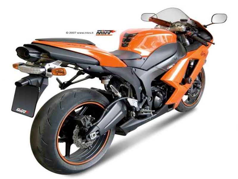 Silencioso Escape Mivv Suono UK.019.L7 Acero Inox / Copa Carbono Kawasaki ZX 6 R 2007-2008. El silencioso de escape Slip On Mivv Suono UK.019.L7 se caracteriza por su peso ligero, sonido característico y diseño innovador. El cuerpo central de este avanzado Slip On está realizado en acero inoxidable muy resistente a los impactos, debido a su proceso especial de galvanización. Los finales del silencioso de escape Mivv S.044.L7 y la brazadera de sujección están realizados con fibra de carbono de la mejor calidad. El slip-on Mivv UK.019.L7 es un escape homologado por la CE gracias a una profunda y larga investigación realizada por el R&D de Mivv. Con el montaje del silencioso Slip On Mivv S.044.L7 también se reduce notablemente el peso respecto al escape original de la moto. (La información que facilita Ramirez Motoracing es orientativa y sujeta a la verificación en la web del fabricante).
