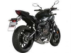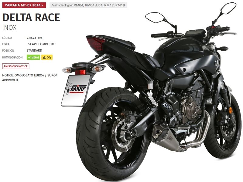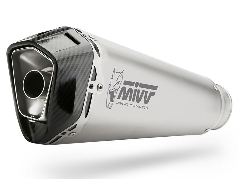 Escape Mivv Y.044.LDRX Yamaha MT-07 2014/2018. Principalmente diseñado para mejorar la estética, el sonido y rendimiento de la moto, el escape slip-on Mivv Delta Race es la última incorporación a la gama de escape de la fábrica italiana. Este escape completo con colectores en acero ofrece detalles de calidad con el único propósito de satisfacer a los motoristas más exigentes. El escape completo Mivv Y.044.LDRX Delta Race se caracteriza por su diseño de forma exclusiva que, a través de una transformación progresiva, termina siendo de cónico a hexagonal. Incorpora tapa en carbono twill 3K, abrazadera perimetral con doble remachado o el casquillo de entrada fabricado solidamente para un enganche preciso. En el silencioso está el característico logo Mivv realizado por la tecnología Láser. (La información que facilita Ramirez Motoracing es orientativa y sujeta a la verificación en la web del fabricante).