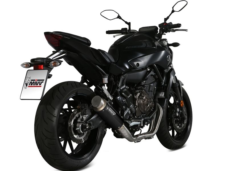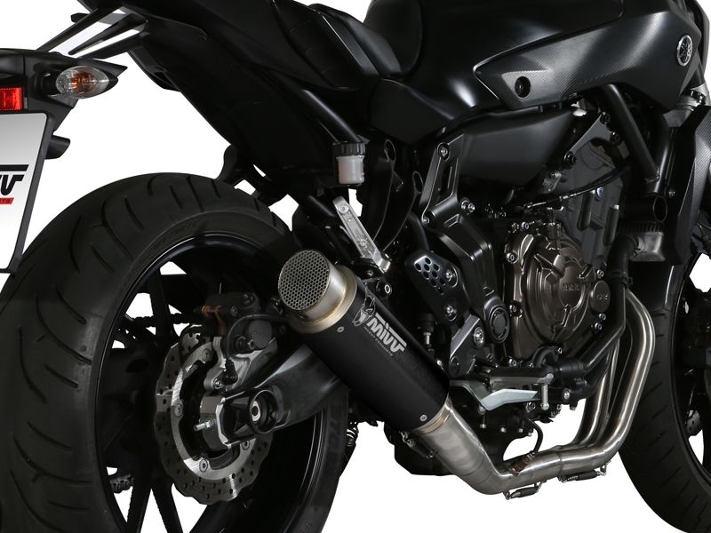 Escape Mivv Y.045.LXBP Gp Pro Yamaha MT-07 2014> (escape completo). Mivv Gp Pro representa la evolución en tecnología y diseño del exitoso escape Mivv Gp. Este nuevo escape Mivv se caracteriza por ofrecer un diseño compacto y agresivo con acabado de máxima precisión. El tubo de salida del Gp Pro incorpora una rejilla amovible y protectora similar a las que se utilizan en competición, Tras ella se camufla sutilmente el dB-killer para no dañar su estética. La nueva generación de slip-ons Gp Pro ha sido diseñada para motos de última generación deportivas y otros modelos naked. El logotipo de Mivv está realizado por la a través de tecnología láser para un acabado muy fino y elegante. (La información que facilita Ramirez Motoracing es orientativa y sujeta a la verificación en la web del fabricante).