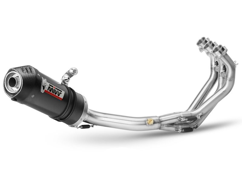 Escape completo Mivv Y.049.L3C Oval Carbono / Copa Carbono. Escape completo Mivv Y.049.L3C equipado con el silencioso de escape Slip-On Oval Carbon Cap y que se caracteriza precisamente por su copa de carbono tipo twill 3k de alta resistencia térmica. La diferencia de peso con respecto al escape original es sustancial. Este silencioso de diseño ovalado, disipa perfectamente el calor gracias sus hendiduras en la copa de carbono, que a su vez, también transmiten un look agresivo. Fabricado con las mejores tecnologías del momento, el Slip On Oval Carbono Carbon Cap deriva directamente de la experiencia de Mivv en los Grandes Premios de motociclismo. Los colectores están realizados en acero inoxidable y soldados con TIG para conseguir el mejor acabado. El escape Mivv Y.049.L3C también ofrece garantía a nivel de prestaciones, asegurando una mejora de potencia y del par de motor. (La información que facilita Ramirez Motoracing es orientativa y sujeta a la verificación en la web del fabricante).