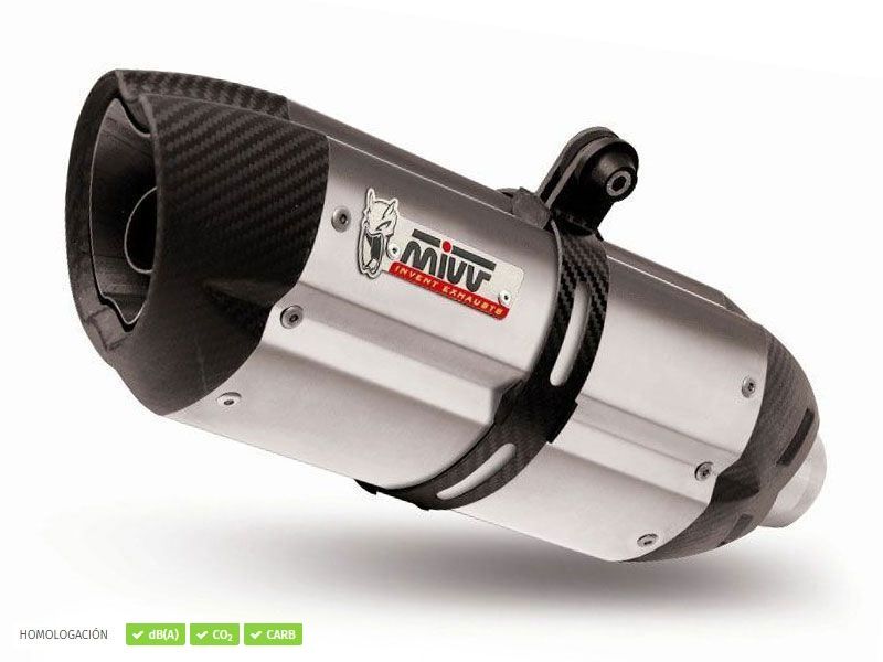 Silencioso Escape Mivv Suono Y.057.L7 Acero Inox / Copa Carbono Yamaha MT-10 2016. El silencioso de escape Slip On Mivv Suono Y.057.L7 se caracteriza por su peso ligero, sonido característico y diseño innovador. El cuerpo central de este avanzado Slip On está realizado en acero inoxidable muy resistente a los impactos, debido a su proceso especial de galvanización. Los finales del silencioso de escape Mivv Y.057.L7 y la brazadera de sujección están realizados con fibra de carbono de la mejor calidad. El slip-on Mivv Y.057.L7 es un escape homologado por la CE gracias a una profunda y larga investigación realizada por el R&D de Mivv. Con el montaje del silencioso Slip On Mivv Y.057.L7 también se reduce notablemente el peso respecto al escape original de la moto. (La información que facilita Ramirez Motoracing es orientativa y sujeta a la verificación en la web del fabricante).