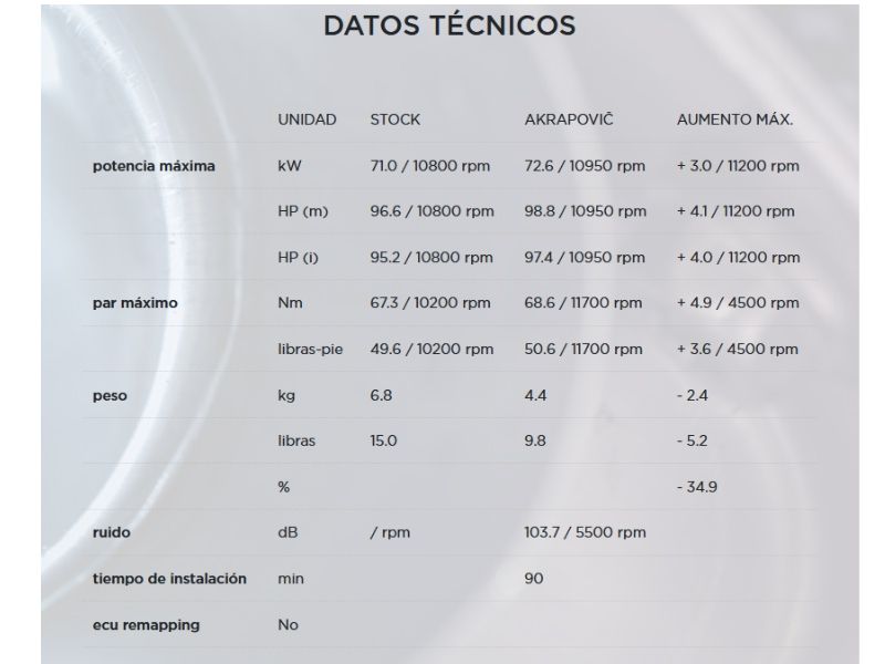 Datos técnicos escape Akrapovic S-A6R4-HAPC: