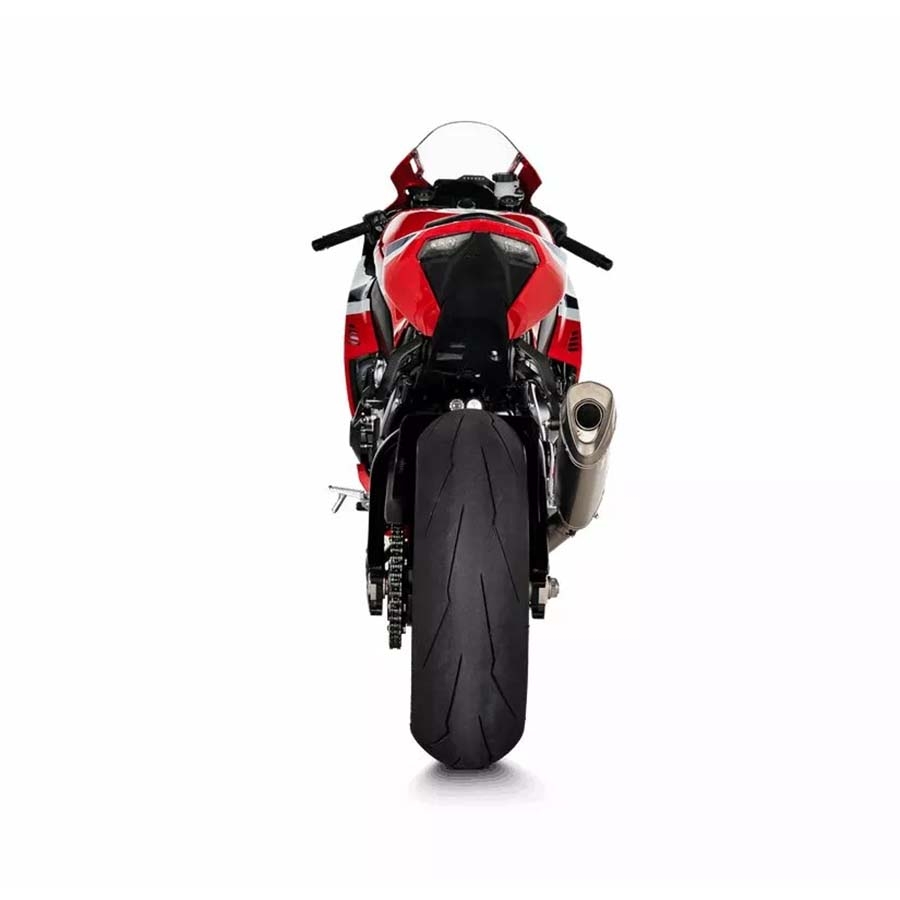 Compatible con colector opcional “Track Day”: Akrapovic ofrece un colector en acero inoxidable para reducir los niveles de sonido, especialmente útil en circuitos con restricciones acústicas.