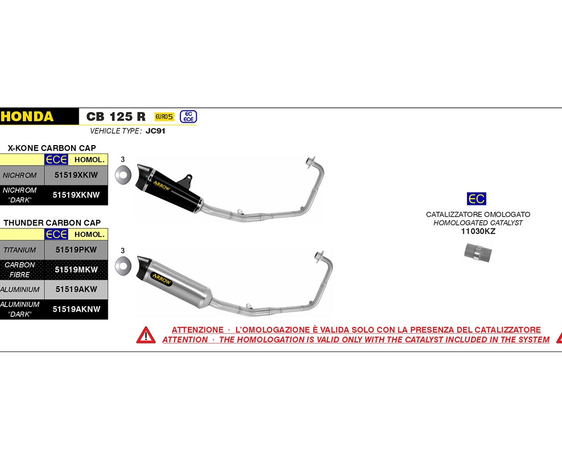 Pack ahorro Arrow escape específico para Honda CB 125 R 2021. El pack incluye escape completo (modelo a elegir) y catalizador homologado.