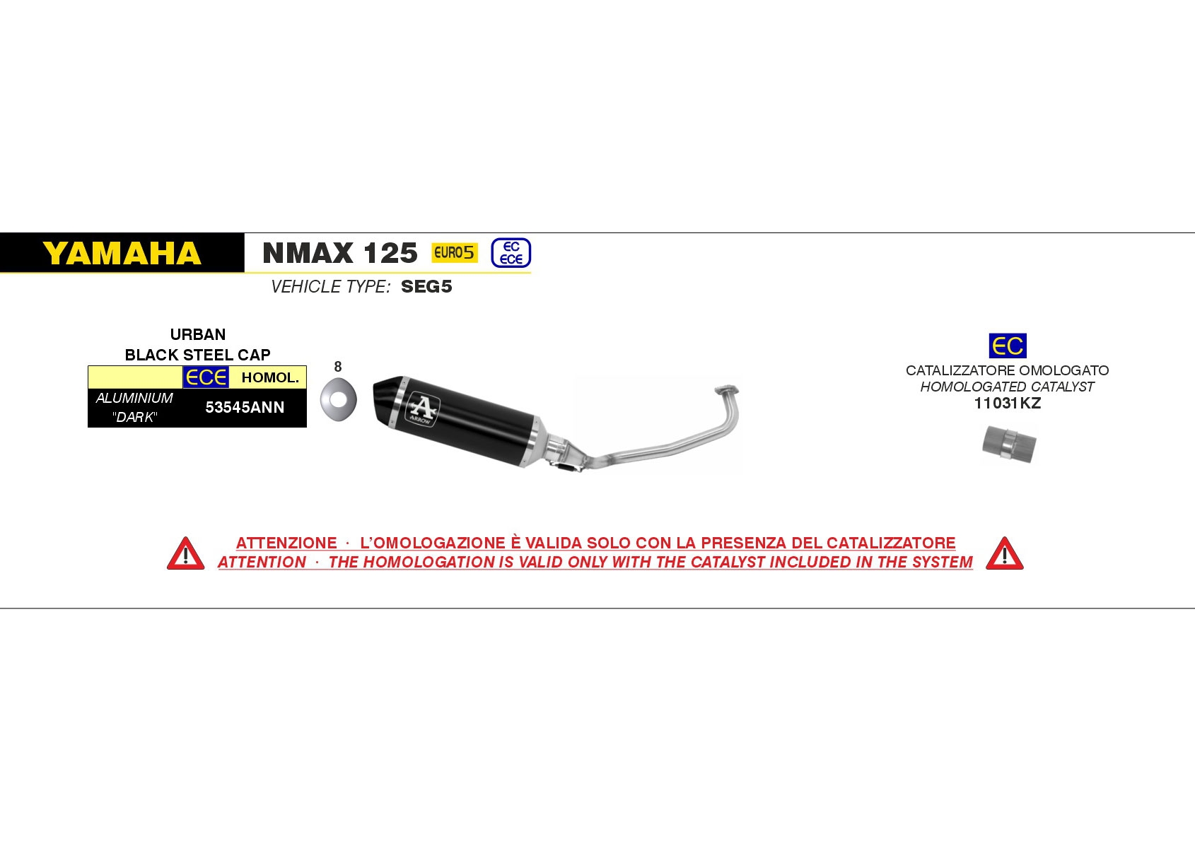 Pack ahorro Arrow escape específico para Yamaha NMAX 125 2021/2022. El pack incluye el escape completo con el catalizador homologado.