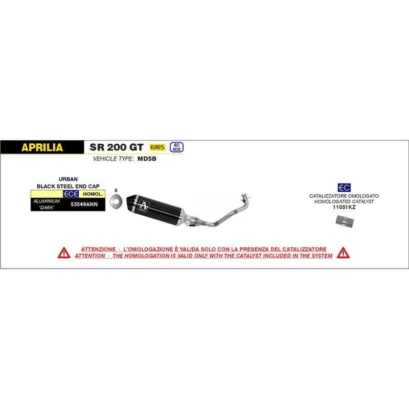 Características técnicas del escape Arrow 53549ANN Urban Aprilia SR 200 GT 2022-2023: