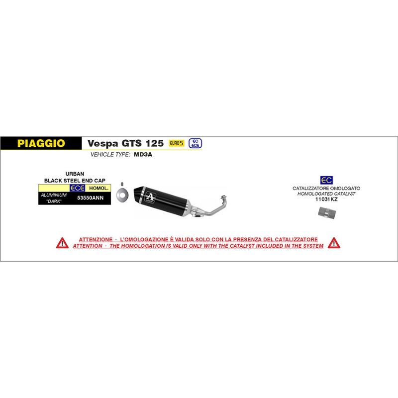 Características técnicas del escape Arrow 53550ANN Urban Piaggio VESPA GTS 125i.e. 2021-2023: