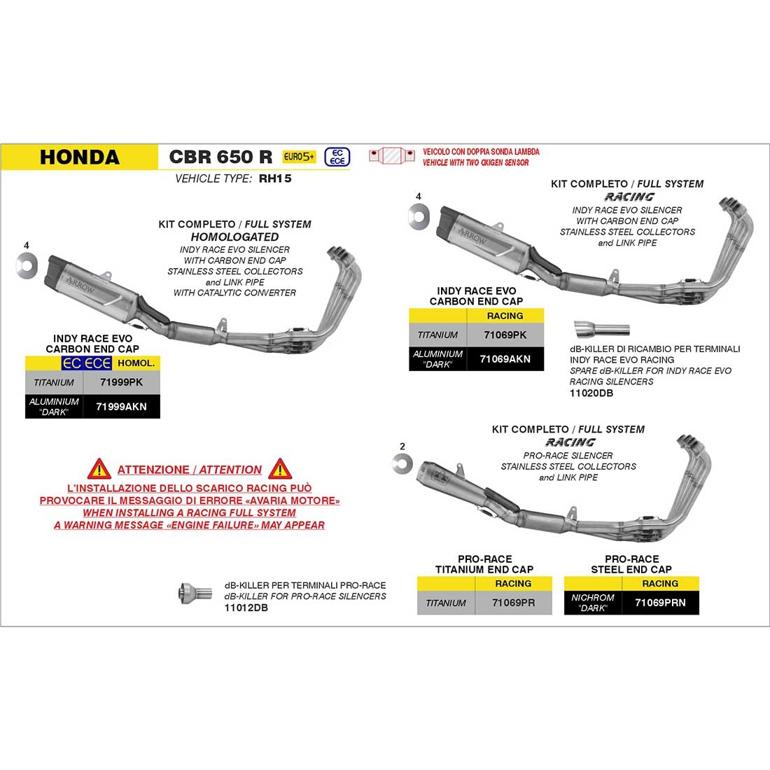 Escape completo Arrow 71069PR Honda CBR 650 R 2024 racing silencioso Pro-Race de titanio