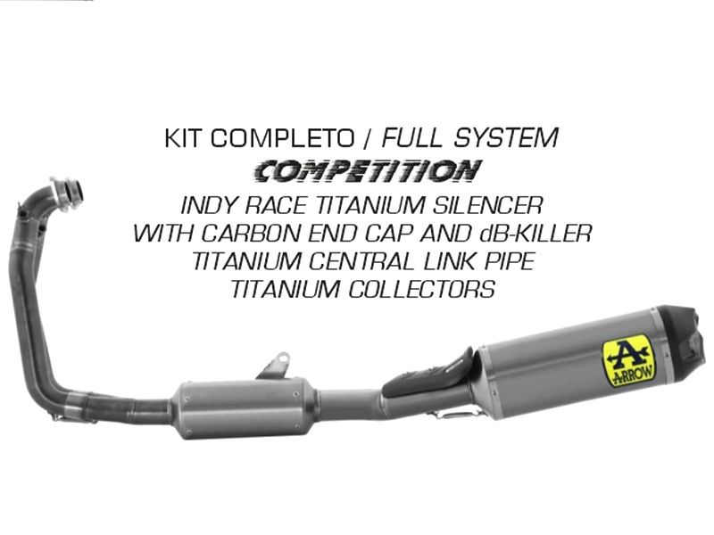 Escape completo Arrow 71215CKZ Aprilia RS 660 2020/2021 (Sistema completo COMPETITION FULL TITANIUM"). La línea completa Arrow 71215CKZ Competition ha sido diseñada y desarrollada por el departamento de investigación y desarrollo Arrow Special Parts con la colaboración de los mejores equipos del campeonato del mundo WSBK y WSSP. Este escape completo incorpora numerosas diferencias respecto al escape de serie para ofrecer un mayor rendimiento en motores con preparación y con más potencia. Los escapes de competición Arrow son obras maestras de ingeniería donde son utilizados los mejores materiales disponibles y soldados por completo con soldadura T.I.G. Los escapes de Competición están disponibles en la versión Full Titanio, totalmente en aleación de titanio, o con colectores en acero inoxidable. Ambos colectores disponen de un enganche que permite que la sonda de oxígeno pueda comprobar y corregir rápida y fácilmente la programación de la centralita, dependiendo de las condiciones del clima y del circuito. El avanzado diseño de los silenciosos permite mantener los niveles óptimo de ruido regulados para la competición. Debido a las restricciones del ruido de las motos en los circuitos y de las verificaciones en los circuitos europeos, existe una versión disponible con Db killer extraíble (según modelo). (La información que facilita Ramirez Motoracing es orientativa y sujeta a la verificación en la web del fabricante).