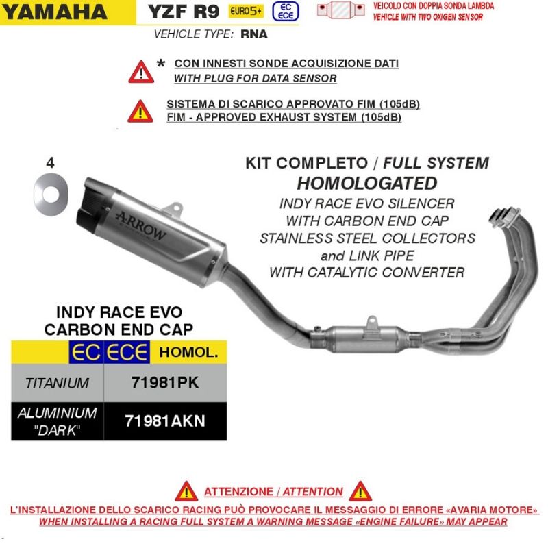 Escape completo Arrow 71241PTR Competition EVO racing Yamaha YZF R9 2025 Full Titanium