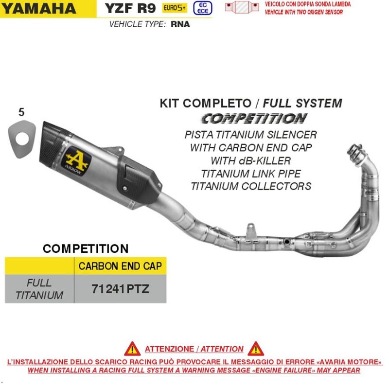 Escape completo Arrow 71241PTZ Competition racing Yamaha YZF R9 2025 Full Titanium