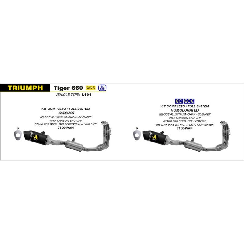 Escape completo Arrow 71504VAN Veloce Triumph Tiger 660 2022-2023