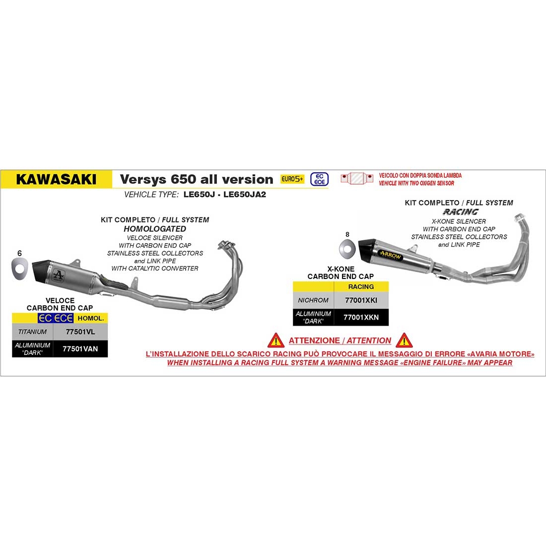 - Aplicación: Kawasaki Versys 650 2025, versiones Euro5+ LE650J / LE650JA2, con doble sonda lambda.