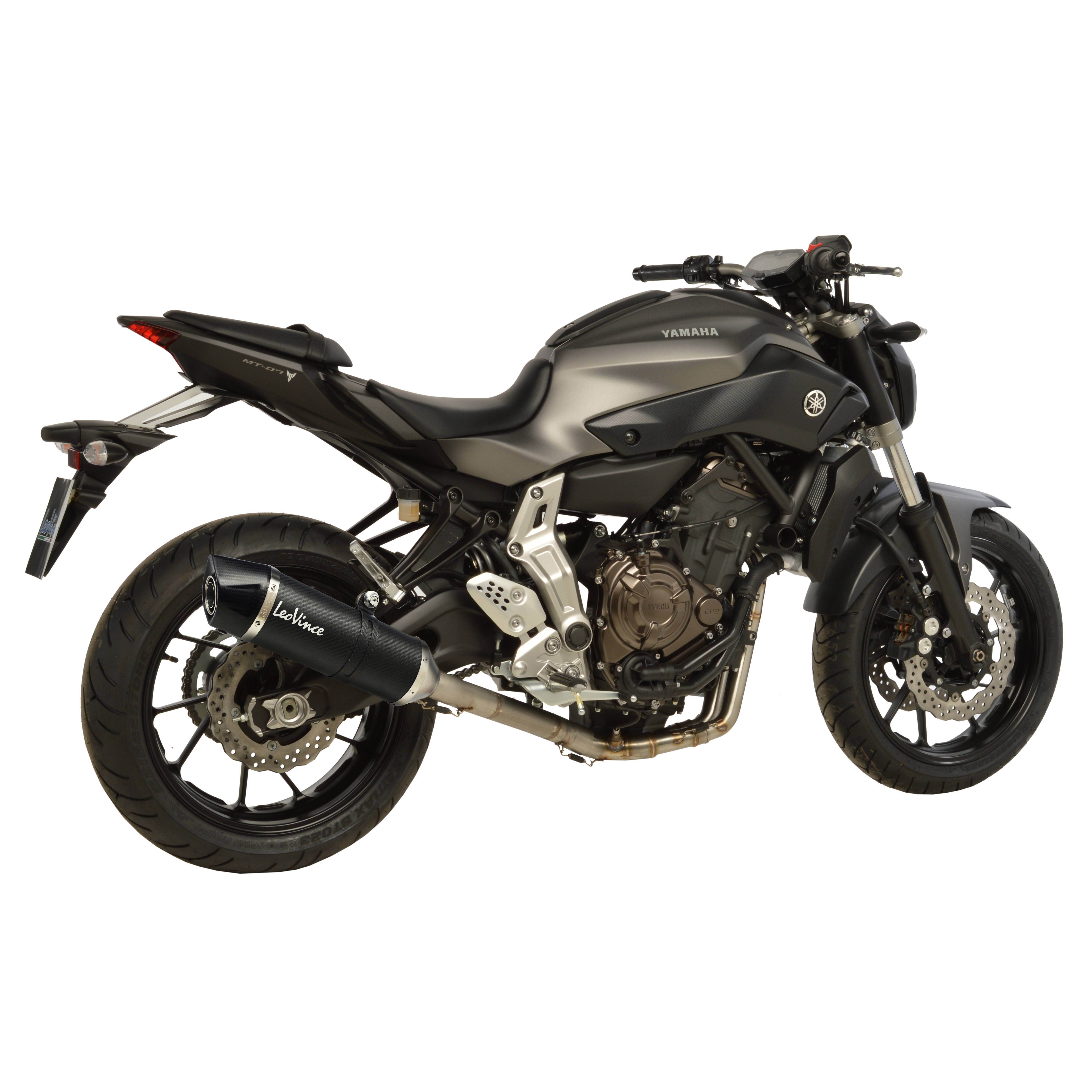 Escape completo LeoVince 14105E Lv One Evo Yamaha MT-07/FZ-07 2014-2016. El silencioso Lv One Evo posee un diseño compacto, moderno y de líneas cuadradas. El cuerpo del silencioso está realizado en fibra de carbono de alta calidad para una resistencia, rendimiento y ligereza exepcional. La tapa final del silencioso LV One Evo está cortada asimétricamente y fabricada en fibra de carbono para combinar el máximo rendimiento y ligereza sin renunciar al estilo Made in Italy.
