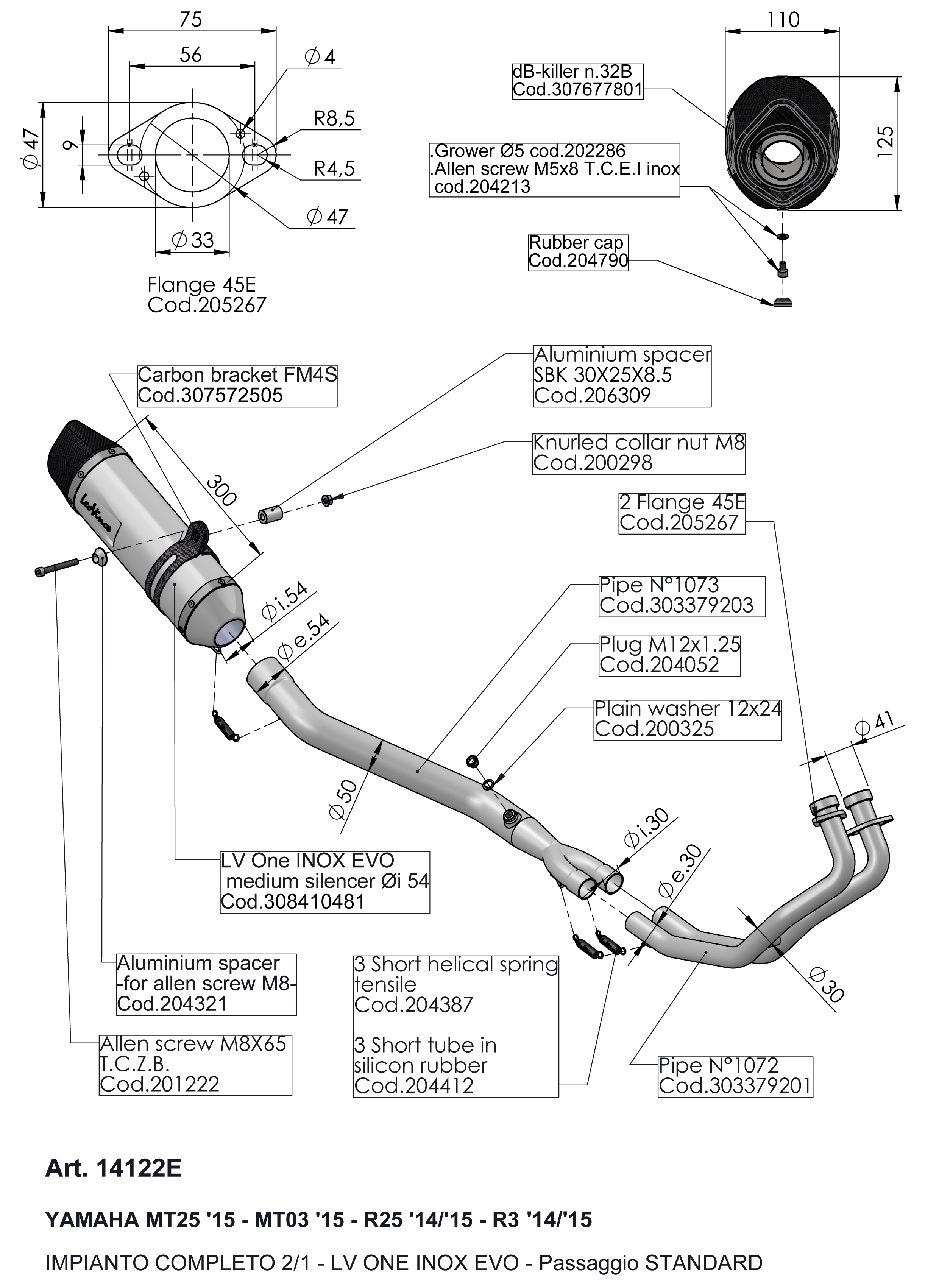Escape completo LeoVince 14122EU Lv One Evo Yamaha MT-25 2015-2018. El silencioso Lv One Evo posee un diseño compacto, moderno y de líneas cuadradas. El cuerpo del silencioso está realizado en acero inoxidable con revestimento AISI 304 para una resistencia, rendimiento y ligereza exepcional. La tapa final del silencioso LV One Evo está cortada asimétricamente y fabricada en fibra de carbono para combinar el máximo rendimiento y ligereza sin renunciar al estilo Made in Italy.