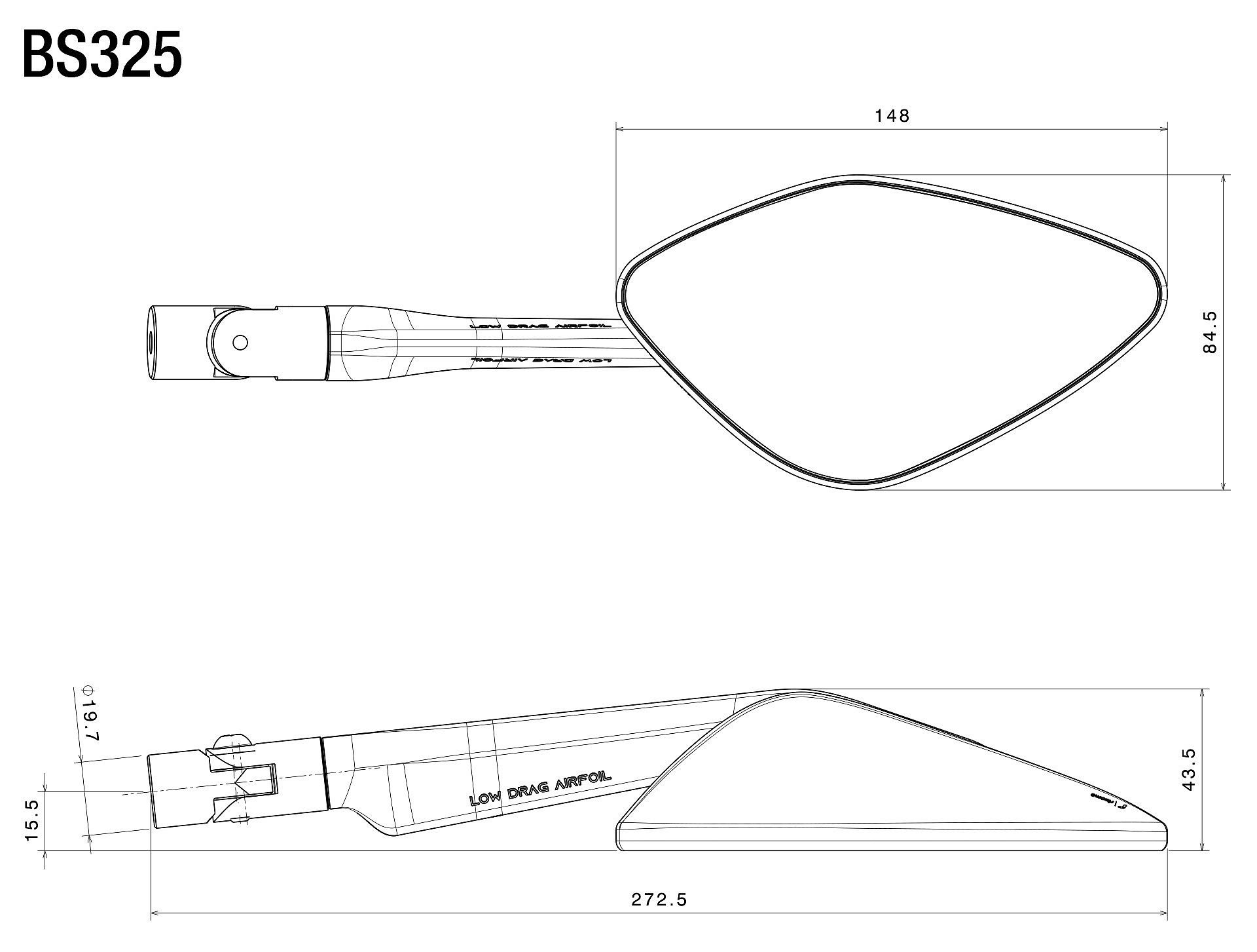 - Espejo disponible con posición derecha (BS325) o izquierda (BS324).