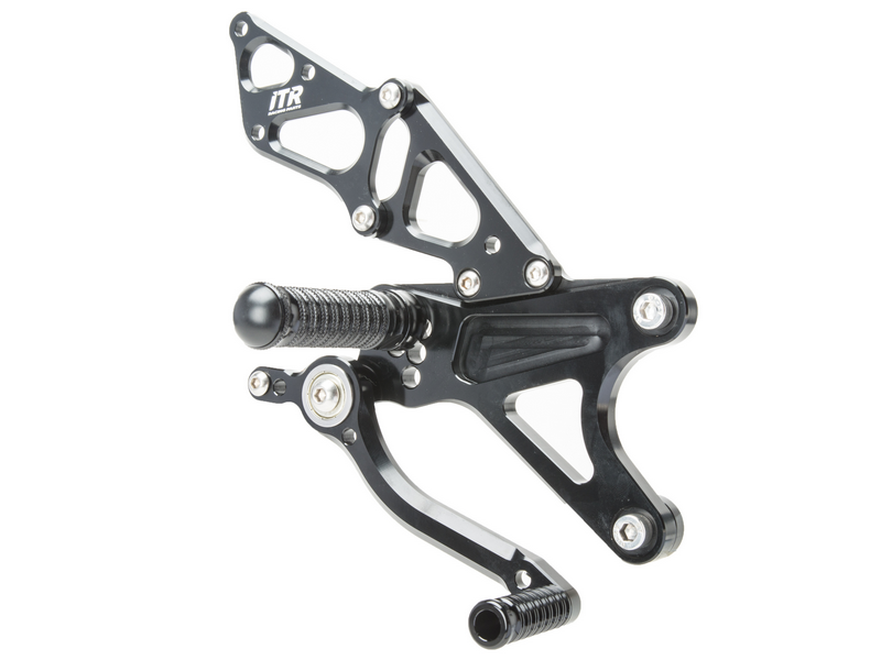 Estriberas ITR IT2002N Tipo 1 Yamaha YZF R1 2009-2014. Las estriberas regulables ITR IT2002N Tipo 1 ofrecen excelentes acabados con un precio muy interesante. Estas estriberas están realizadas en aluminio 6068 de gran dureza y disponen de multiples posibilidades de ajuste para adaptarse a culquier piloto. Los estribos o posapies cuentan con un perfil de agarre moleteado para evitar resbalones y tapones de nylon en los extremos. Las Eestriberas ITR IT2002N poseen unas punteras con diseño antideslizante e intercambiables. Incluyen instrucciones de montaje. Disponible recambios para sustituir en caso de caída.