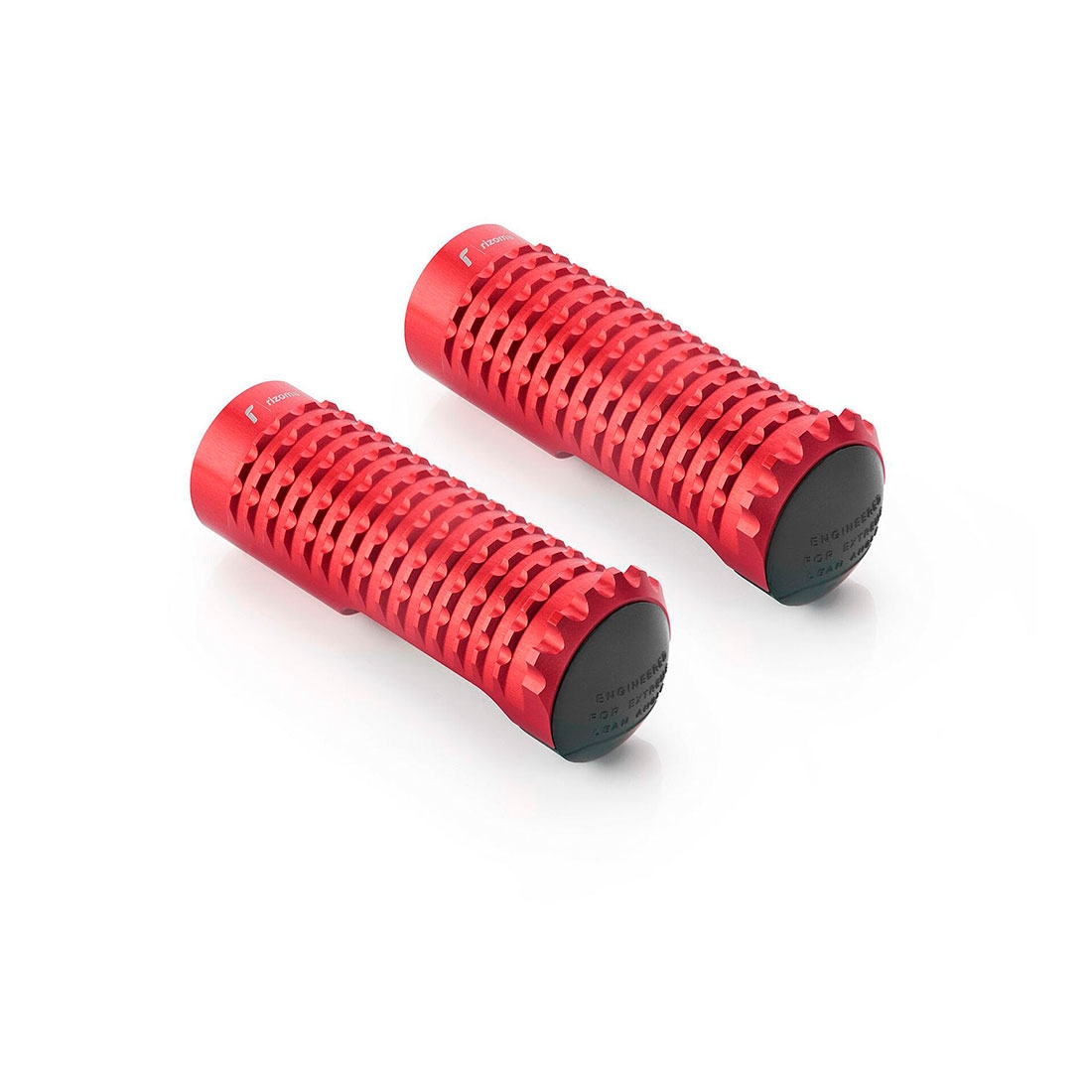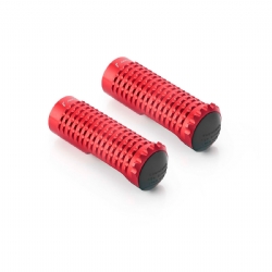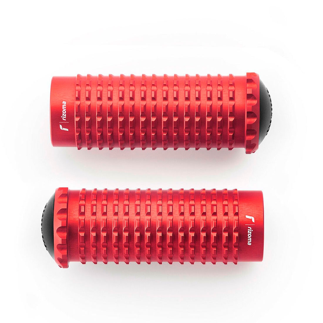 Estriberas Rizoma PE631R Extreme EX B-Pro Rojo. Para diseñar las nuevas estriberas Extreme, Rizoma ha aplicado sus conocimientos y experiencia en el mundo de la competición. Estas estriberas han sido realizadas a partir de un bloque macizo de aluminio con mecanizado de alta precisión y nylon; estos 2 materiales han sido seleccionados por su excelente ligereza y resistencia. Para ofrecer el mejor agarre al piloto, Rizoma ha creado una textura de malla ancha que reduce la pérdida de agarre sea cual sea el estilo de conducción. La zona del extremo de la estribera está dotada con tapón de nylon deslizante que se puede reemplazar en caso de caída.