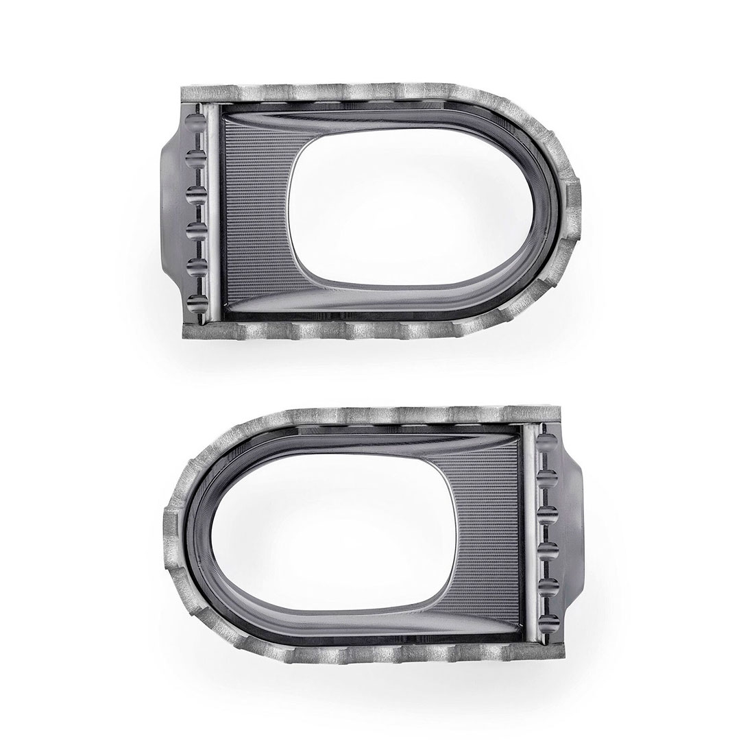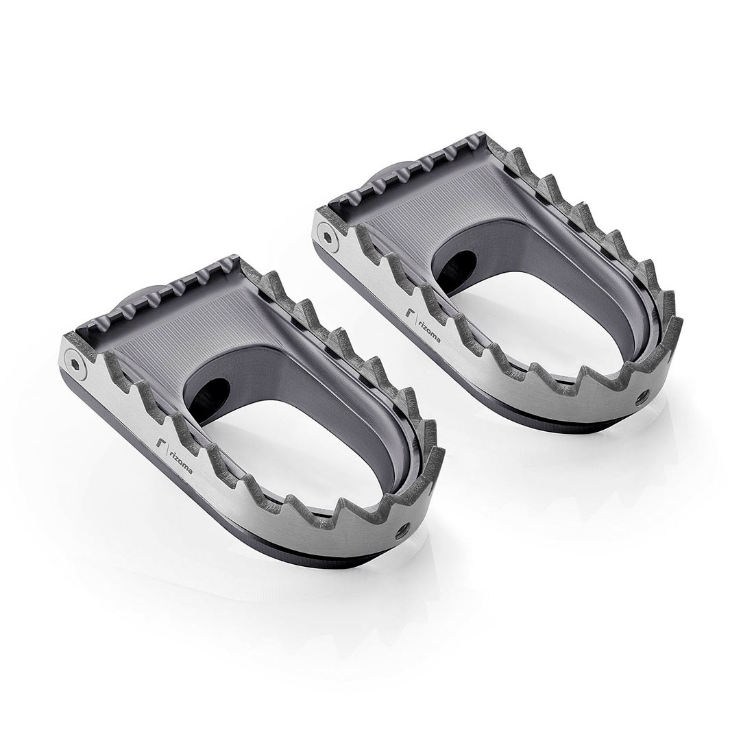 De hecho, Cuando quitamos la inserción de EPDM, se convierte en una estribera mucho más agresiva y prácticamente muy similar a las de off-road. El dentado exterior de acero satinado está diseñado especialmente para evitar la pérdida de agarre lateral, en particular cuando el motorista ejerce una mayor presión del pie hacia parte más exterior de la estribera.