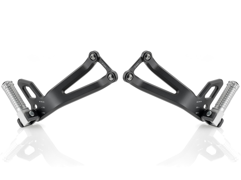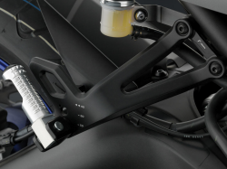 Estriberas pasajero Rizoma PE680B Yamaha MT-09 | Tracer. Nuevas estriberas realizadas en aluminio que se caracterizan por su gran eficacia, por su diseño único y por su elegancia. Posibilidad de regulación hacia arriba o hacia abajo gracias a las peforaciones con ajuste (escalonado 10 mm). Las estriberas Rizoma PE680B para el pasajero cuentan con la homologación TUV.