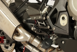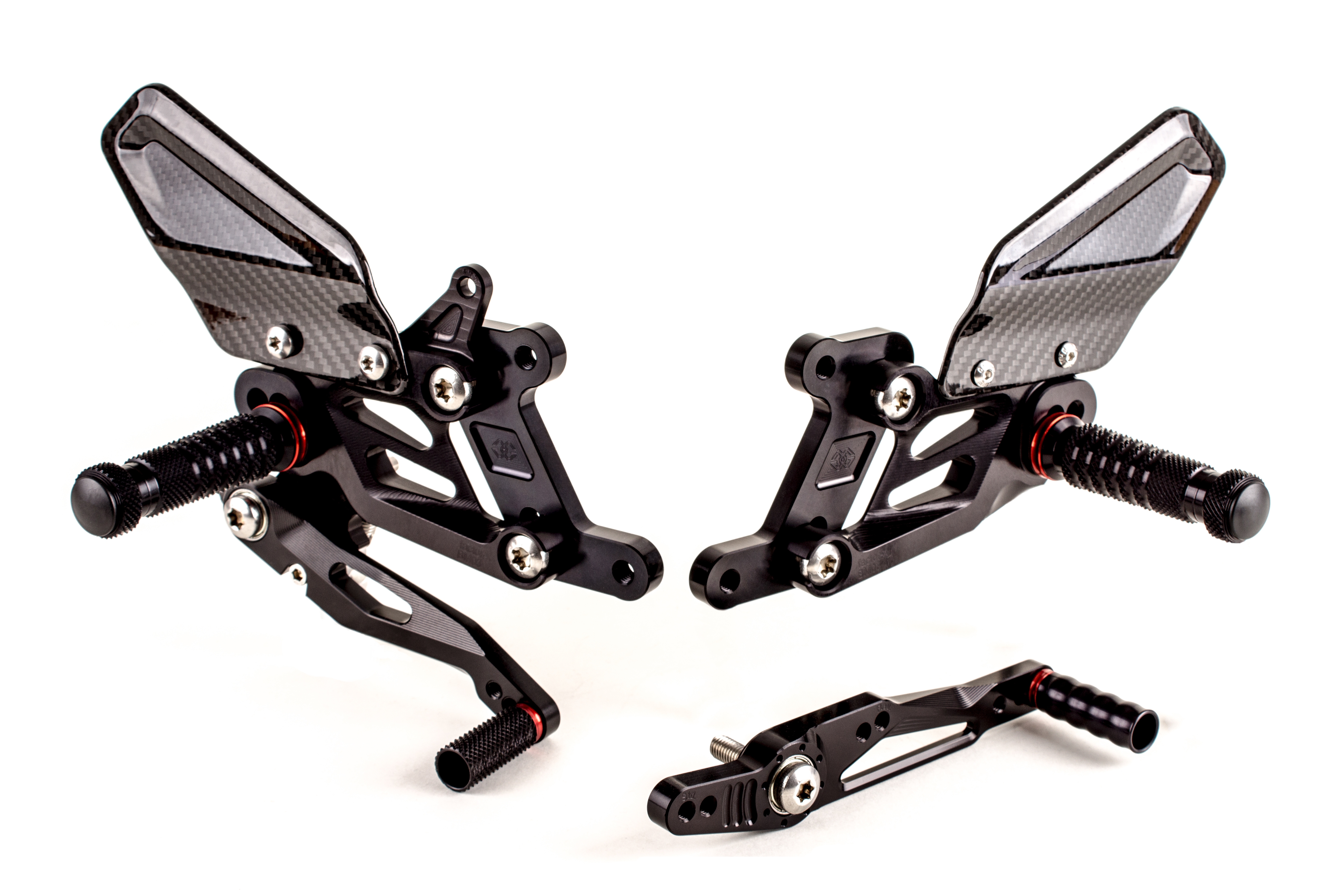 Estriberas retrasadas Gilles Tooling FXR-BM04-B FXR negro. Se trata de las estriberas retrasadas más deportivas y ligeras de Gilles Tooling. Las estriberas Gilles Tooling FXR son el resultado de los años de experiencia en el World Superbike y Moto Gp, ofreciendo el mejor rendimiento posible con el mínimo peso, además de un diseño estético muy equilibrado y deportivo.