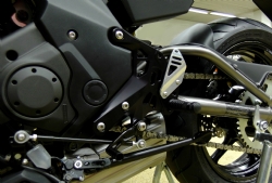 Estriberas retrasadas Gilles Tooling FXR-K04-BS FXR negro / plata. Se trata de las estriberas retrasadas más deportivas y ligeras de Gilles Tooling. Las estriberas Gilles Tooling FXR son el resultado de los años de experiencia en el World Superbike y Moto Gp, ofreciendo el mejor rendimiento posible con el mínimo peso, además de un diseño estético muy equilibrado y deportivo.