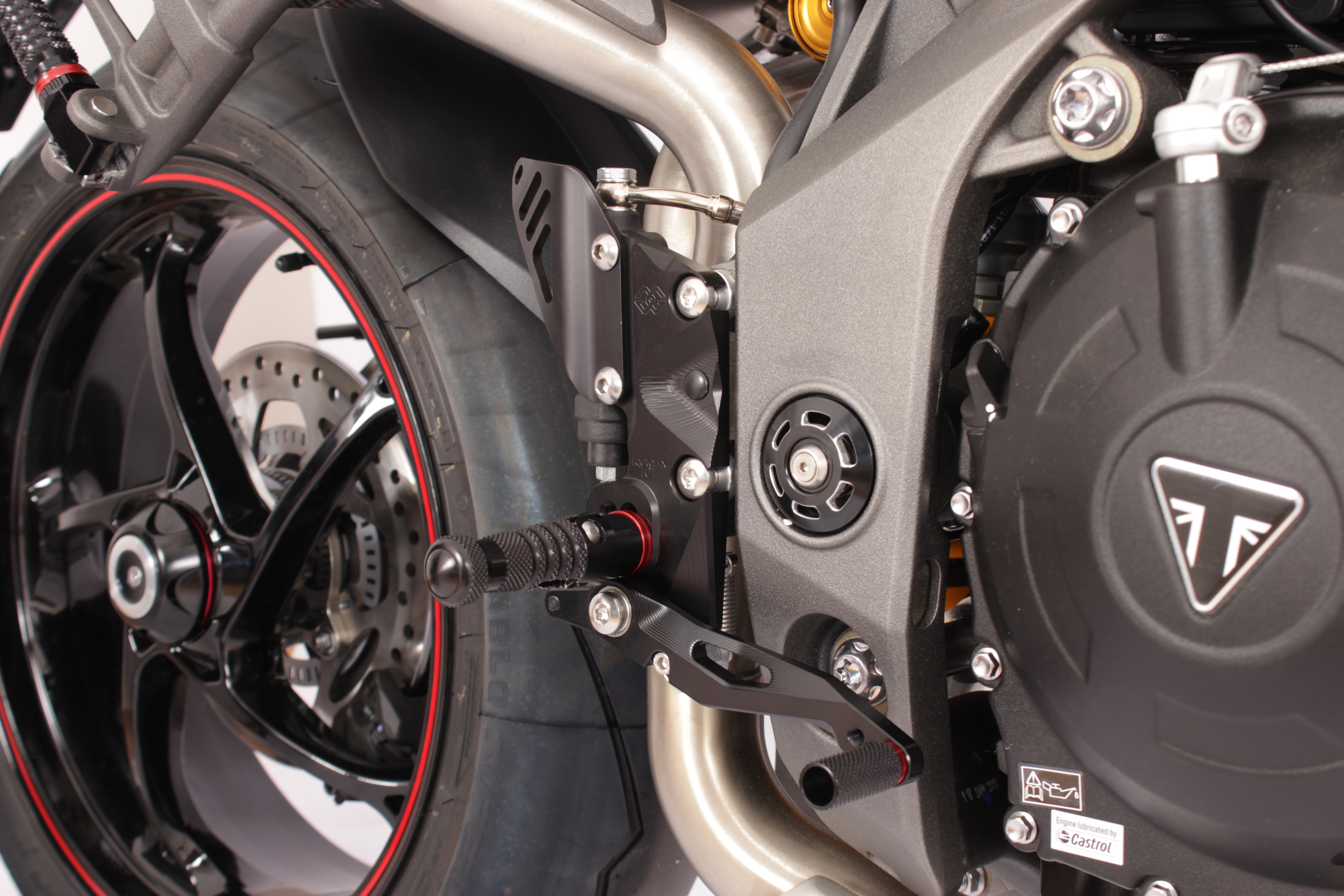 Estriberas retrasadas Gilles Tooling FXR-T01-B FXR negro. Se trata de las estriberas retrasadas más deportivas y ligeras de Gilles Tooling. Las estriberas Gilles Tooling FXR son el resultado de los años de experiencia en el World Superbike y Moto Gp, ofreciendo el mejor rendimiento posible con el mínimo peso, además de un diseño estético muy equilibrado y deportivo.
