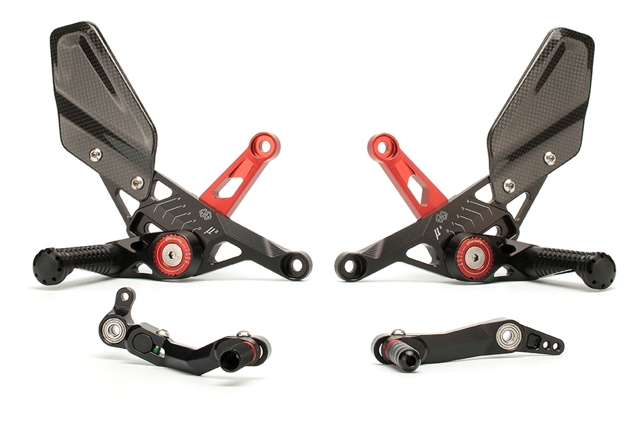 Estriberas retrasadas Gilles Tooling MUE2-MV01-BR MUE2 negro / rojo. Nuevas estriberas de moto Gilles Tooling MUE2 con diseño innovador de última generación y estética muy deportiva y futurista. Las MUE2 están realizadas en aluminio de alta calidad con mecanizado de alta precisión mediante CNC para ofrecer un peso ultraligero además de una solidez y rigidez muy elevadas. Las estriberas Gilles Tooling MUE2 incorporan tecnología derivadas de las carreras de Moto Gp para ofrecer la más alta calidad y capacidad de ajuste simplificada de los estribos. El mecanismo de regulación de la estribera es muy rápido y fácil, ya que se realiza mediante deslizamiento y/o rotación en un solo punto, pudiendo elegir entre cinco posiciones por deslizamiento y cuatro posiciones por rotación. Precio de la pareja. Las imágenes del producto son orientativas.