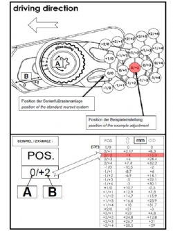 - El posicionamiento de los estribos se realiza mediante una combinación de ajuste giratorio y de empuje en un solo punto, siendo realmente rápido y fácil de seleccionar (cinco posiciones mediante empuje y cuatro posiciones mediante rotación).