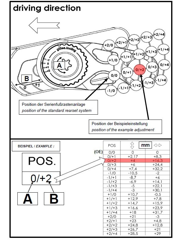 - La posición de los estribos, así como las palancas de freno y cambio se pueden ajustar según las necesidades de cada piloto.
