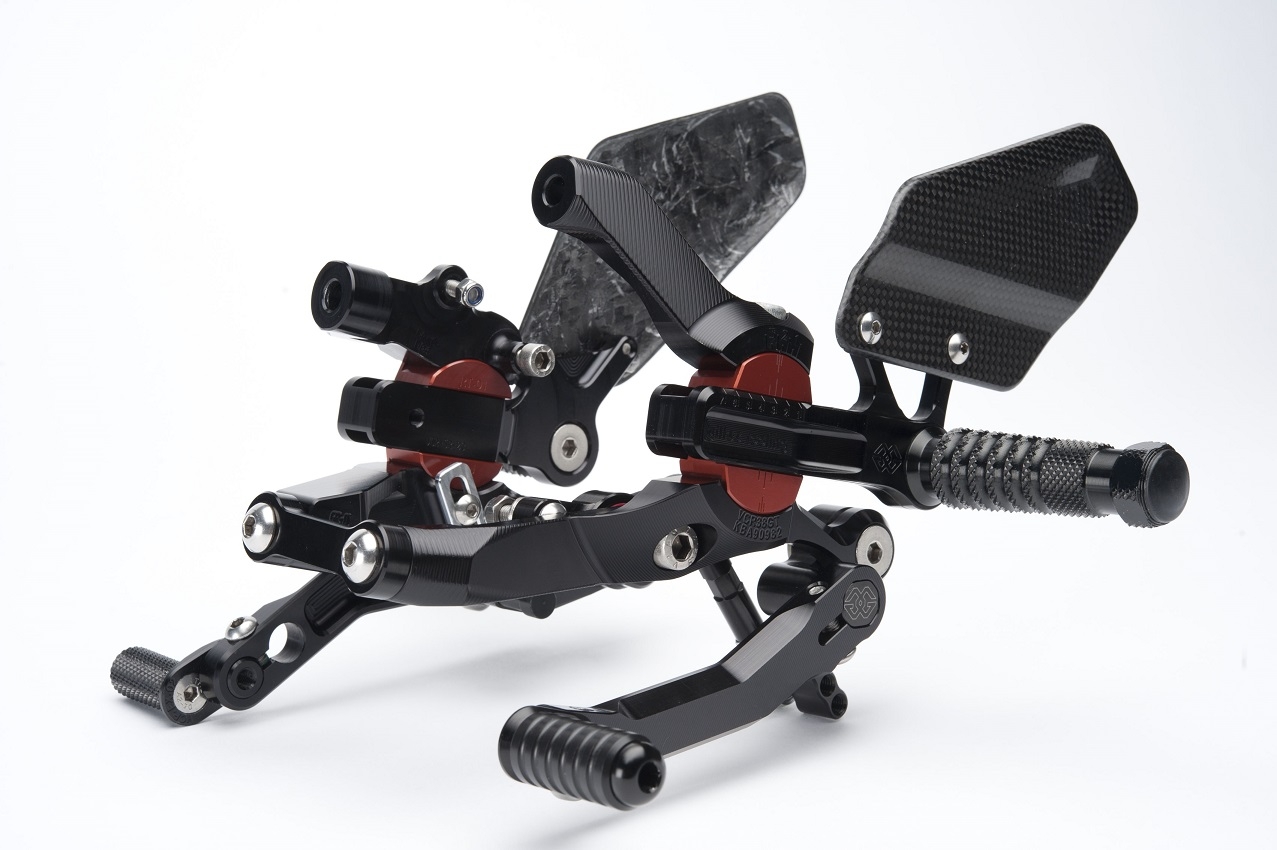 Estriberas retrasadas Gilles Tooling VCR-D04-B VCR38 negro. Las estriberas de moto Gilles Tooling VCR38GT están dotadas de un avanzado sistema de regulación que le permite multitud de posibilidades de ajuste de los estribos, recorrido de cambio y longitud del pie. Están fabricadas en aluminio de alta calidad con mecanizado de alta precisión mediante CNC para ofrecer un peso ultraligero además de una resistencia y rigidez óptimas. Precio de la pareja. Las imágenes del producto son orientativas.